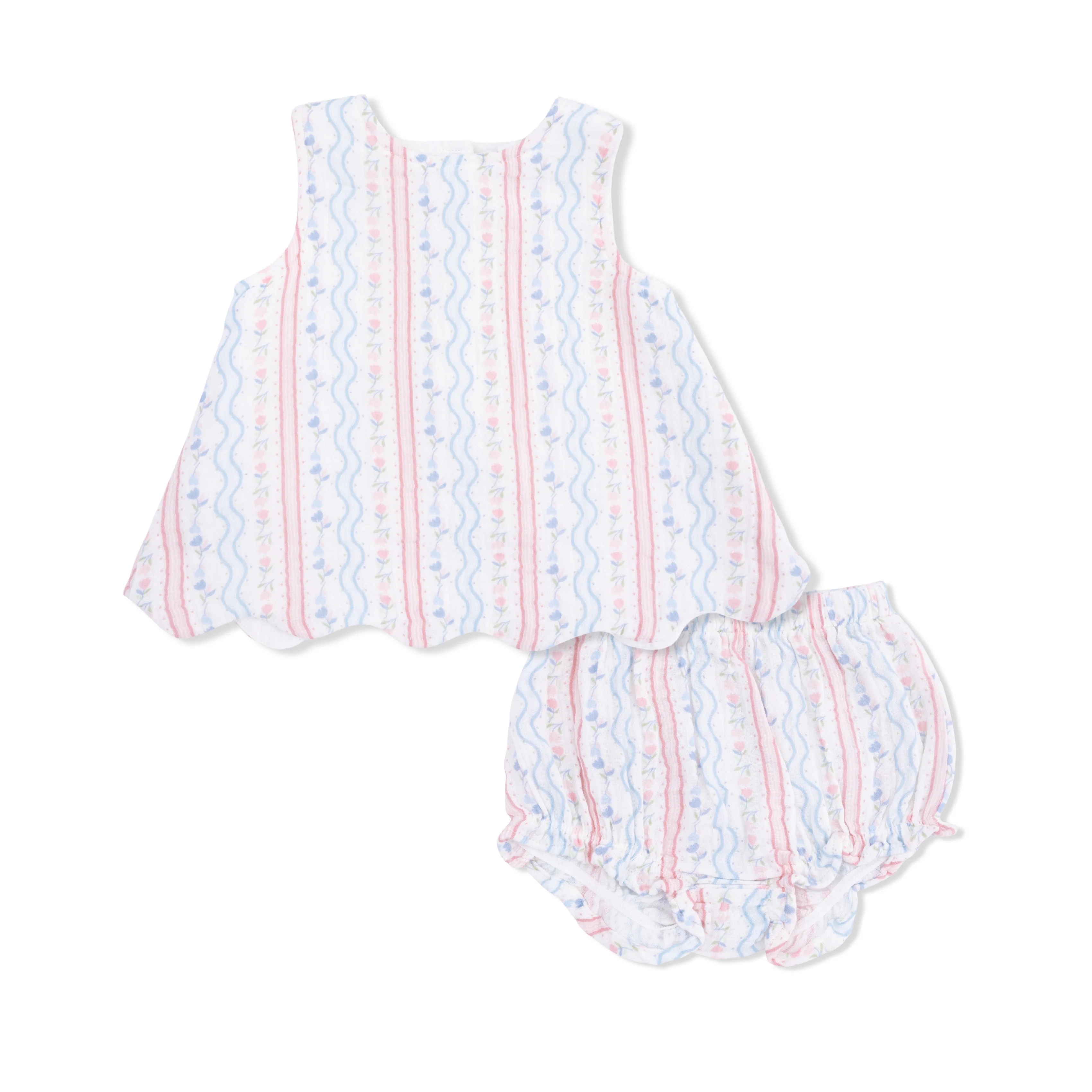 Kimberly Floral Stripe Western Pearl Snap Dress & Bloomer