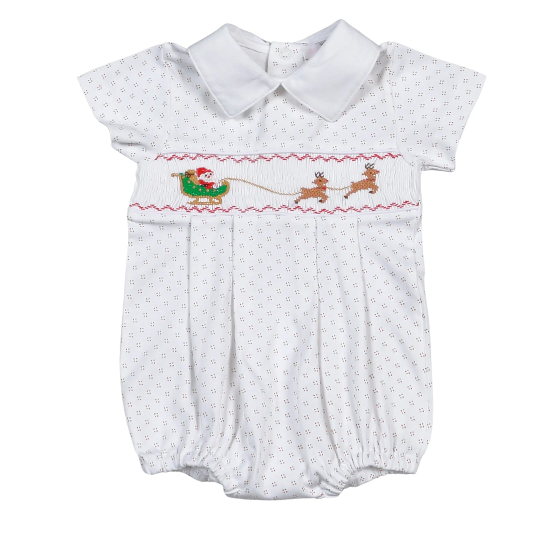 Santa's Sleigh Smocked Pima Bishop Bubble Boy