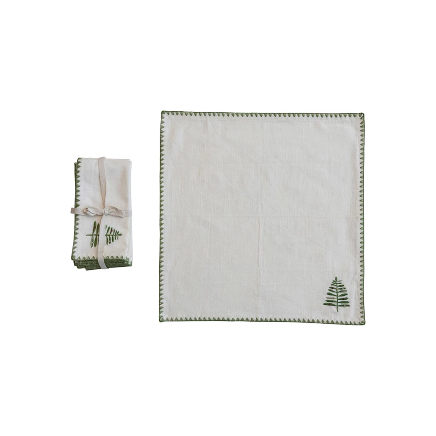 Embroidered Tree Square Cotton Napkins
