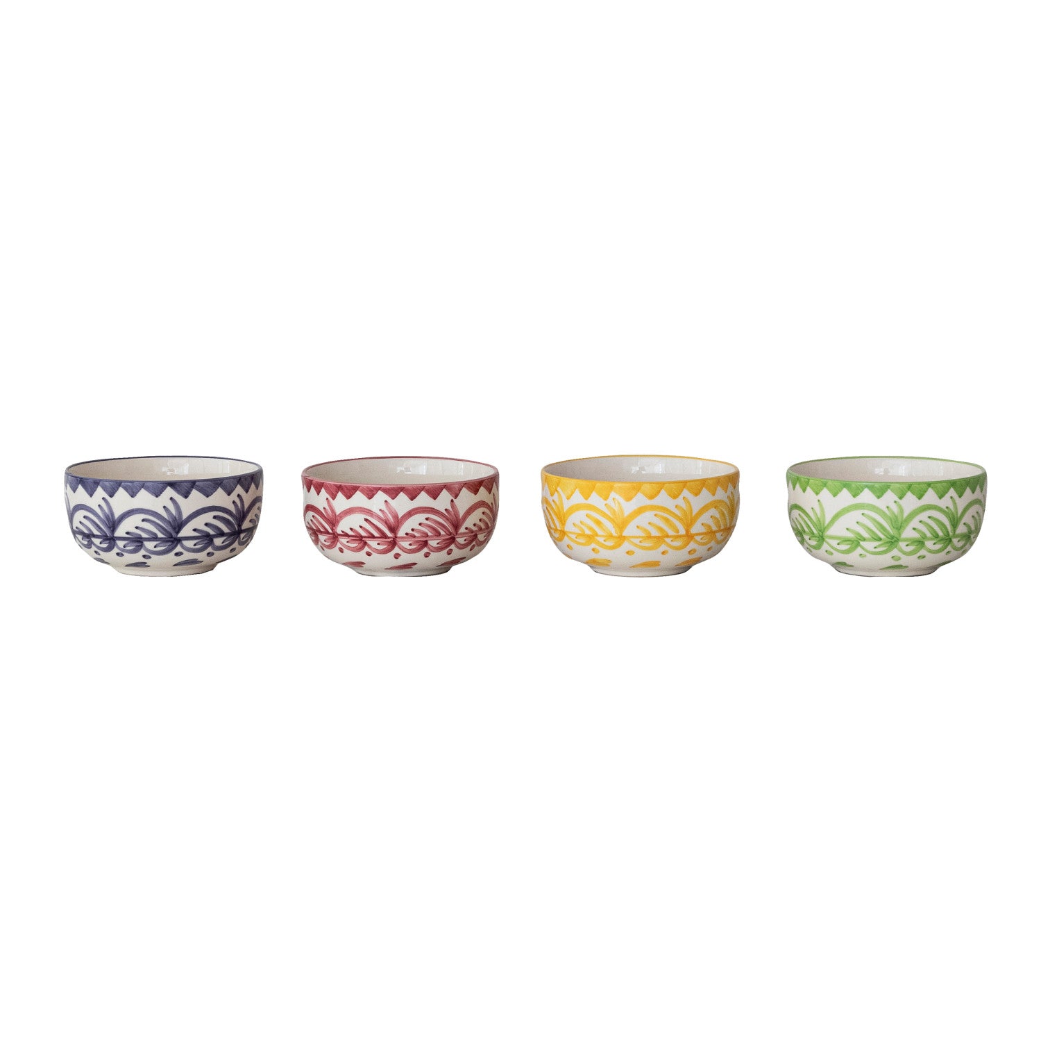 Hand-Painted Stoneware Bowl with Botanical Design