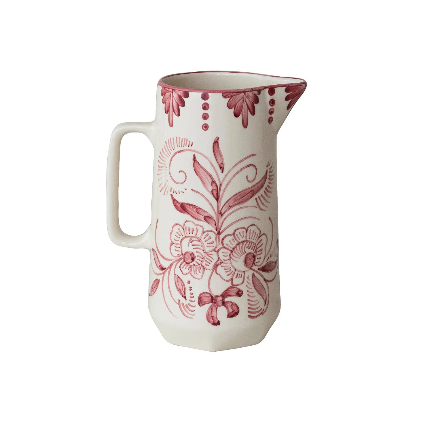 Hand Painted Pitcher with Red Botanical