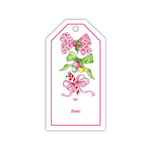 Pink and Green Christmas Bows Gift Tag