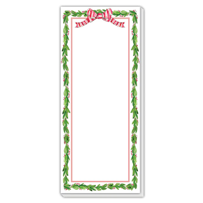 Holly with Berries Border and Red Striped Bow Skinny Notepad