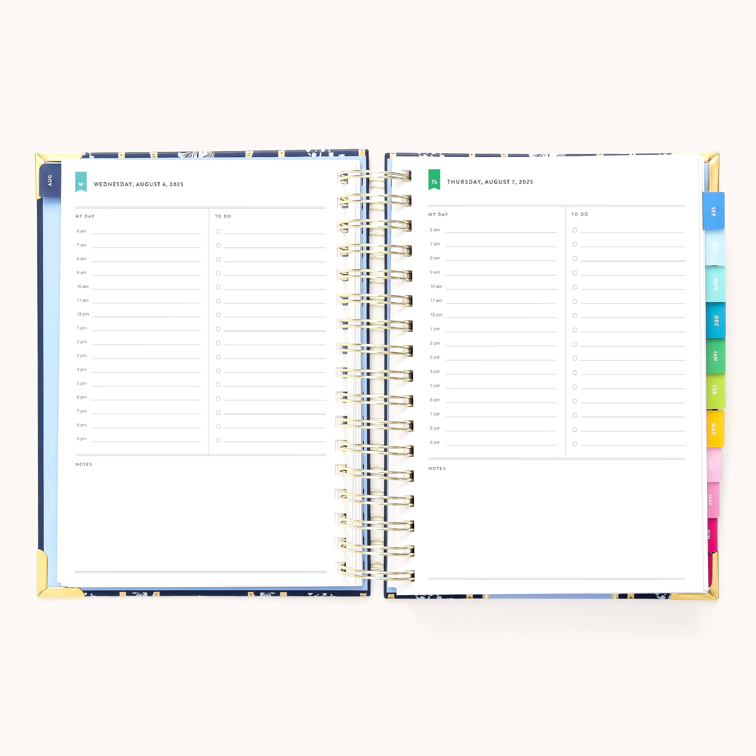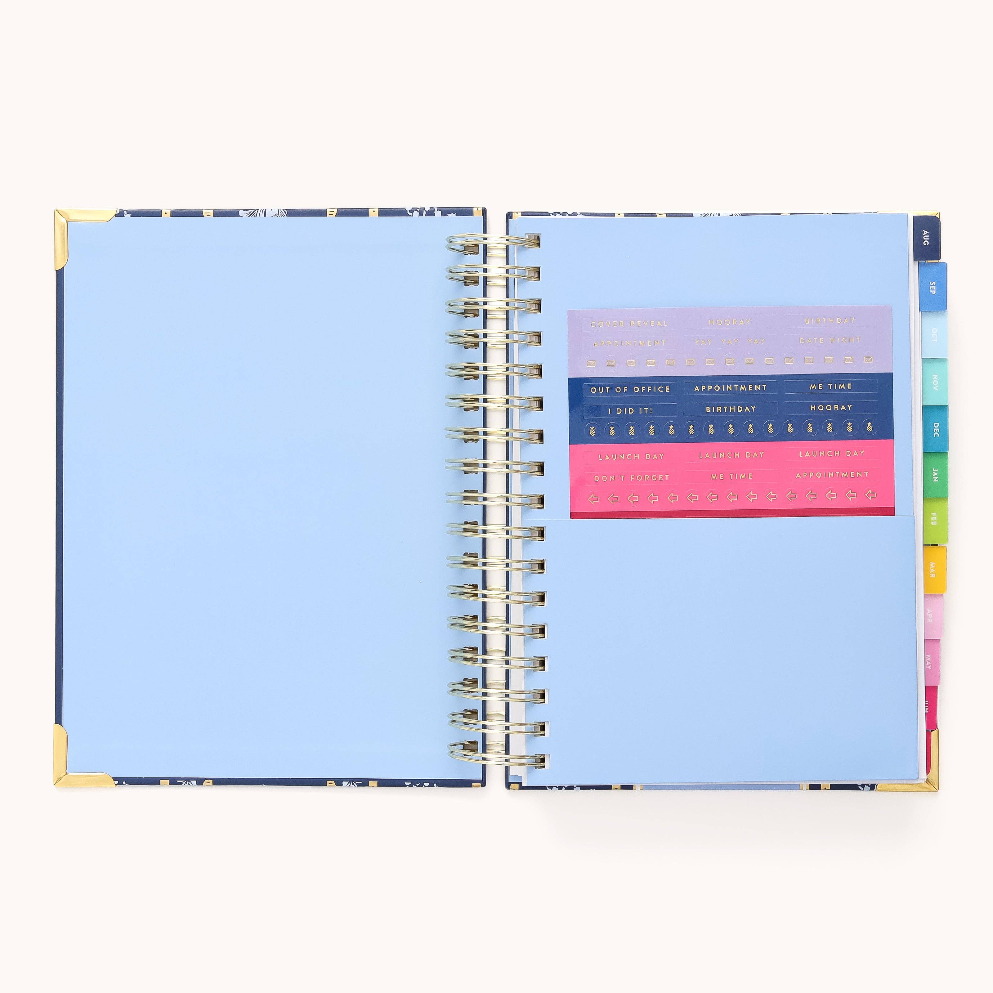Build a life you love with the Spiral Daily Simplified Planner. Designed with gold wire-o binding, a sturdy hard cover, and a full page for each day. Each spread includes space for your schedule, to-do list, and notes. This planner also includes an interior pocket, colorful sticker pages, and Simplified Prep Work pages. This 12-month edition runs from August 2025 to July 2026.