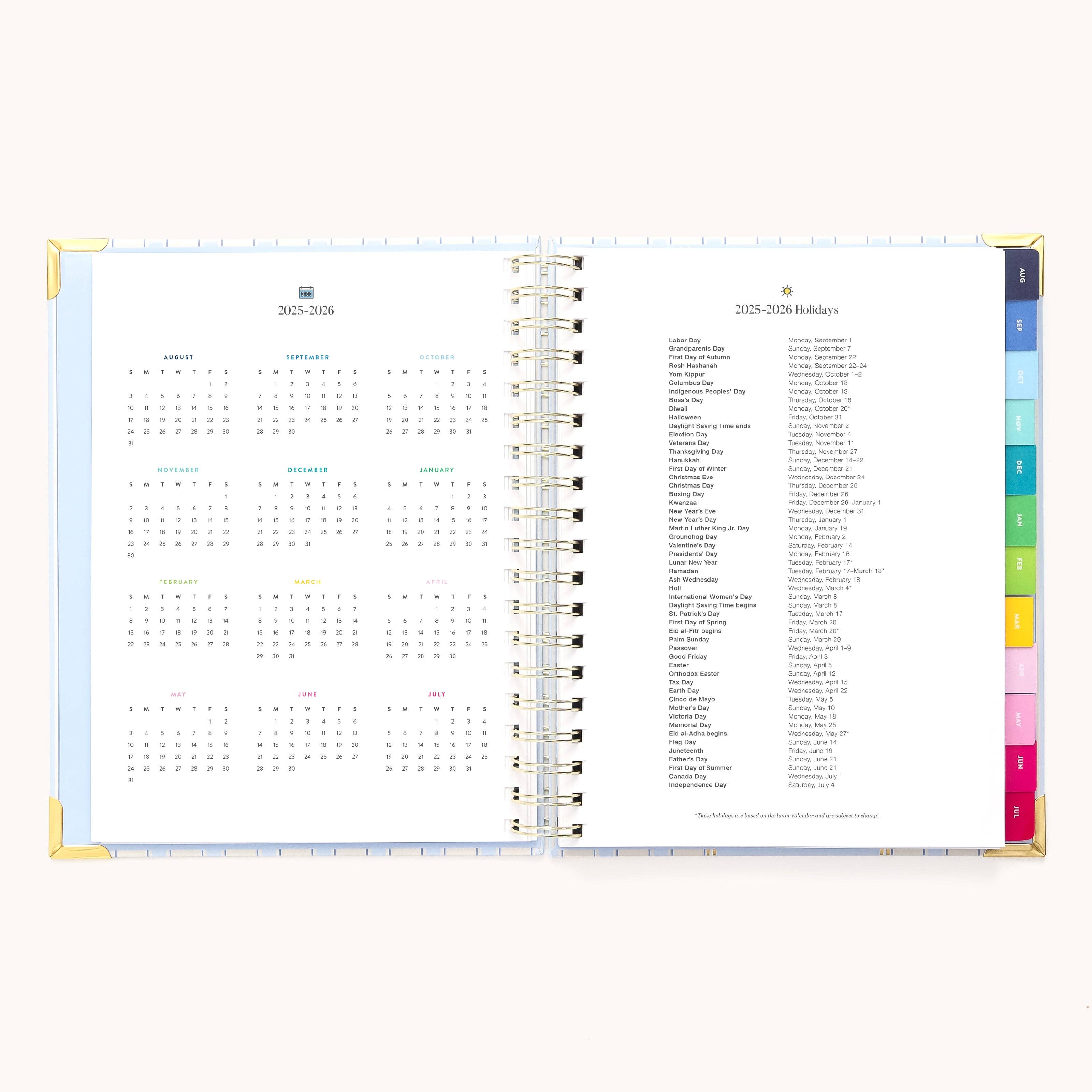 Build a life you love with the Spiral Weekly Simplified Planner. Featuring a gold wire-o binding, a sturdy cover, and a clean weekly layout with to-do and notes sections. This planner also includes an interior pocket, colorful sticker pages, and Simplified Prep Work pages. This 12-month edition runs from August 2025 to July 2026.