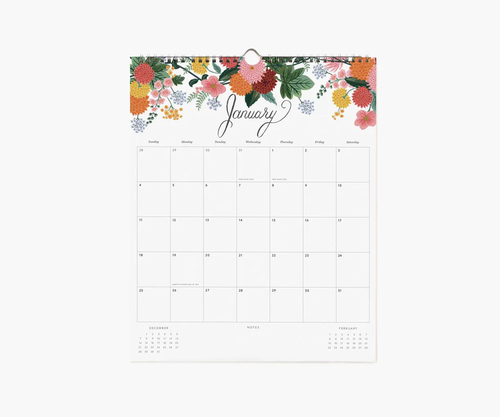 A little extra beauty for your day-to-day plans. In this twelve-month appointment calendar, each month features space for notes and daily engagements, plus a spiral binding with a center notch to make hanging simple.