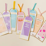 Elevate your reading with our new acrylic bookmarks. Colorful, lightweight and ready to complement any book! Dimensions: 2" x 6" Made of color acrylic Velvet ribbon tassel