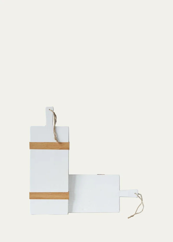 • This reclaimed wood board is the new go-to for all serving, hosting and decorative needs. For a modern spin, the serving board has been updated in a lively white wax, a sure conversation starter.