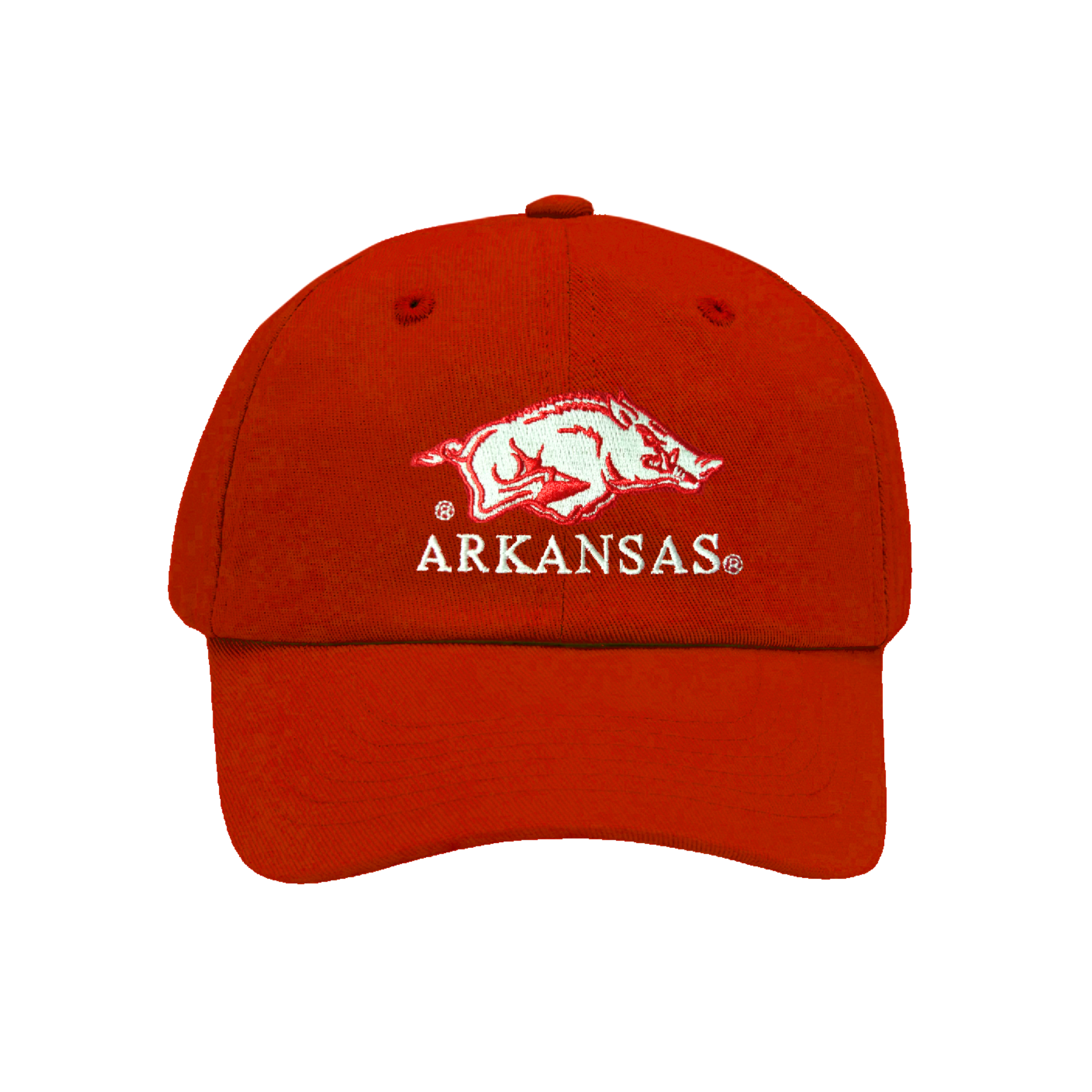 Cheer on the home team with our collection of Officially Licensed Game Day Baseball Hats that colorfully coordinate with your favorite players. Traditional sportswear silhouettes are reimagined with new delightful details as he takes on the tailgates, enters the arena, or even plays the field. Features a classic six-panel, soft-structured fitted construction and an adjustable, seersucker tuck-strap closure. -- Arkansas Razorbacks embroidery with white seersucker tuck strap