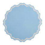 Set the table with style! Our new Baby Blue Fancy Scallop Placemat has an eye-catching scalloped edge that looks classy and stylish (not to mention kind of fancy-schmancy). Perfect for parties, holidays, and any dinner night that needs a little 'je ne sais quoi'. Make your table top an outstanding lay out with our uniquely designed placemats. We have designed our placemats so they can be the extra touch that your dinner table needs for any special occasion. Also forget about having a dirty table afterwards, our placemats are 100% recyclable, making it an effortless cleaning plan. Pack of 12 Measures 14"