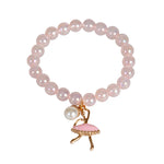 Every ballerina's dream bracelet. This beaded pearl bracelet features a ballerina pendant with a row of pink gems on her dress. A pearl bobble is added detail for this easy stretch elastic stretch bracelet.