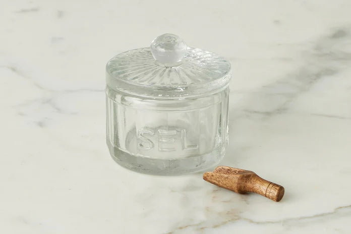 Inspired by the timeless elegance of 1930s Depression glass, the French Bistro Glass Sugar Cellar blends vintage charm with modern functionality. This textured jar is crafted from durable glass and the lid features a rounded knob for effortless access. The front of the vessel is adorned with the French inscription sucre, celebrating it's intended use while adding a touch of European authenticity to your kitchen.