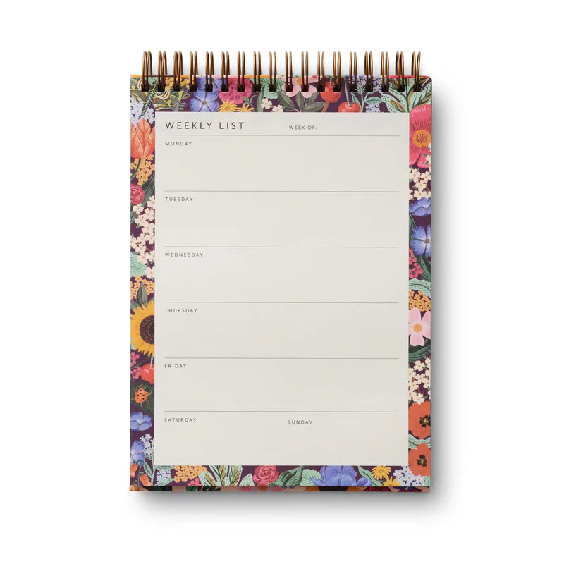 A weekly planner designed for display. 52 undated pages have a space for every day of the week, with room on the back to make lists and jot down notes. Keep it all in easy view with a pop-out stand.