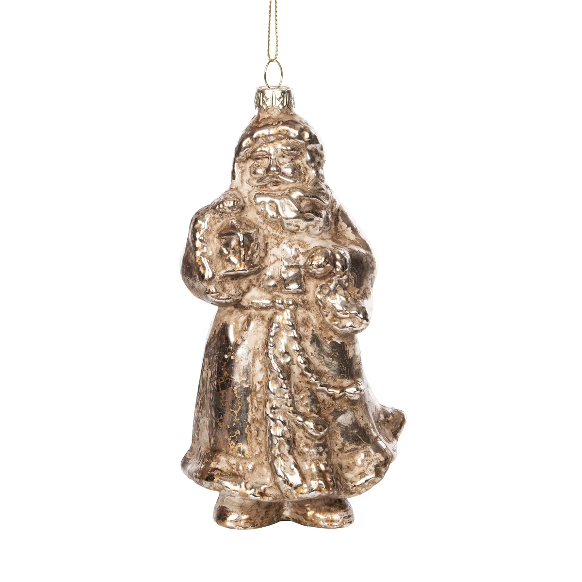 Blown Glass Bronze Shimmer Santa Ornament