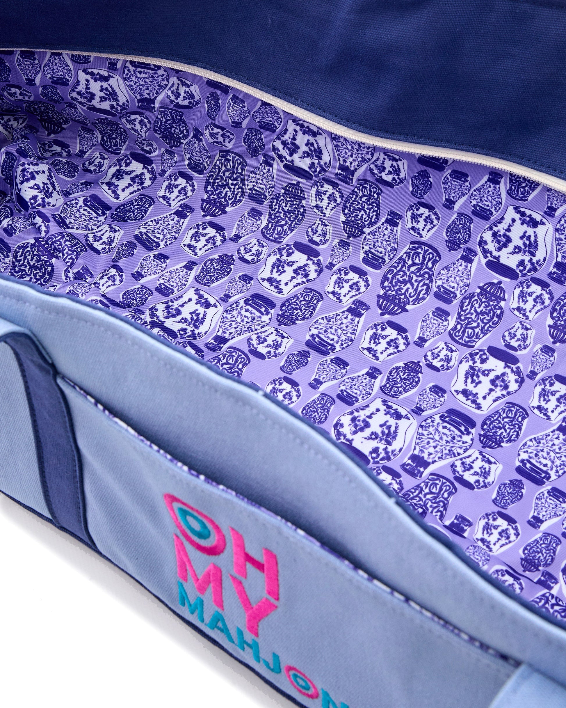 Meet your new Mahjong must-have! This canvas Mat Storage Bag is designed to keep all your Mahjong essentials organized while adding a touch of style to your teaching or game night.Spacious and thoughtfully designed, this bag is perfect for Mahjong teachers and mahjong enthusiasts and can fit a variety of setups: