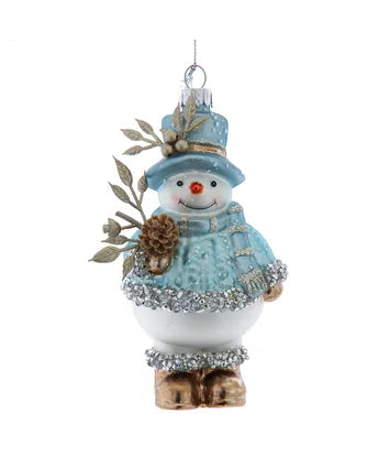 Add a touch of elegance to your holiday decor with Kurt Adler's charming Glass Blue & Platinum Snowman Ornament. This delightful ornament features a beautifully crafted snowman adorned with rich blue tones and shimmering platinum accents, creating a sophisticated look that will brighten up your Christmas tree. Made from high-quality glass, this ornament captures and reflects light beautifully, enhancing your festive displays with a sparkling touch. The intricate details and vibrant colors of the snowman make it a delightful addition to any winter-themed decor.