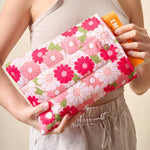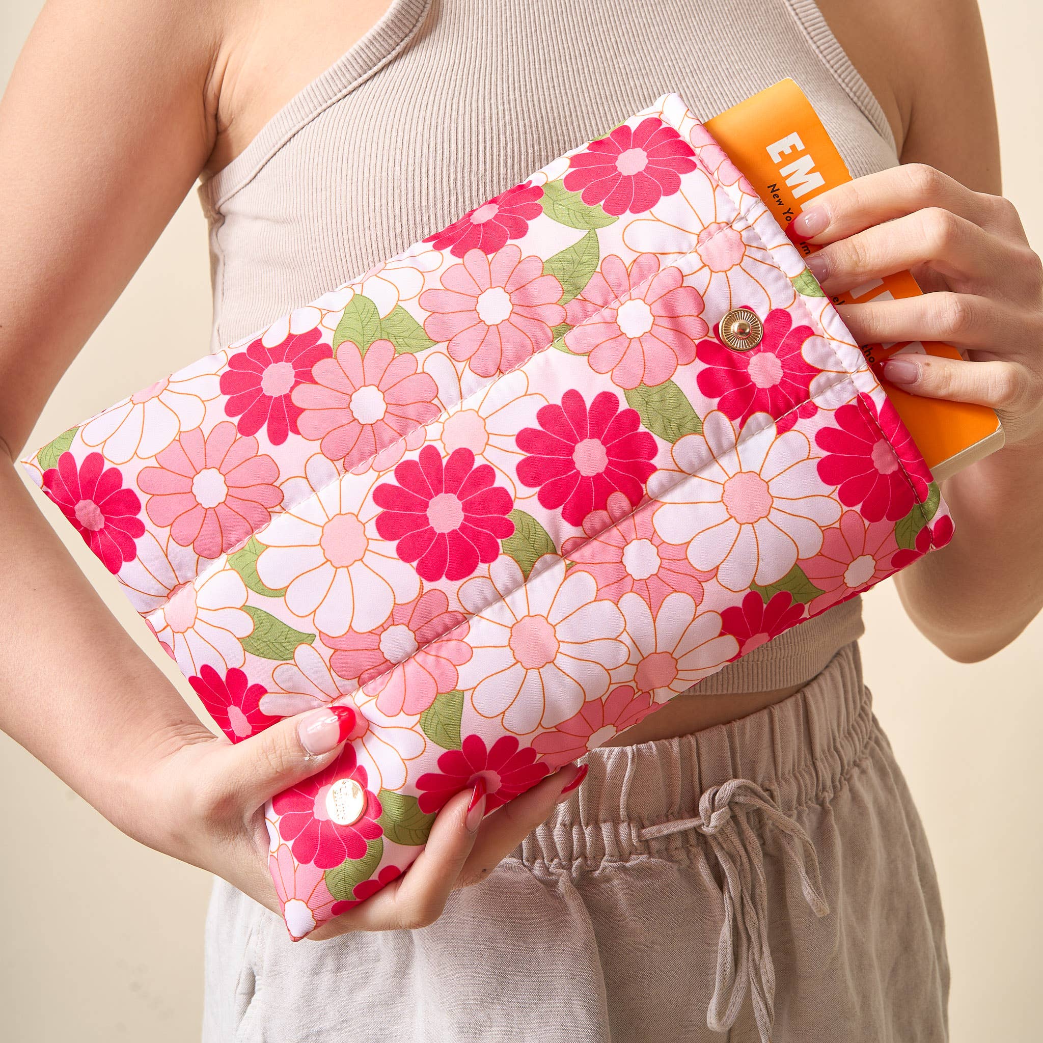 Protect your book in style! Keep your favorite books safe on the go Gold snap closures Pillow sleeve extra protection Polyester material Lightweight and portable Fits most standard book sizes Dimensions: 11” x 8” x 2”