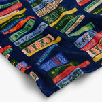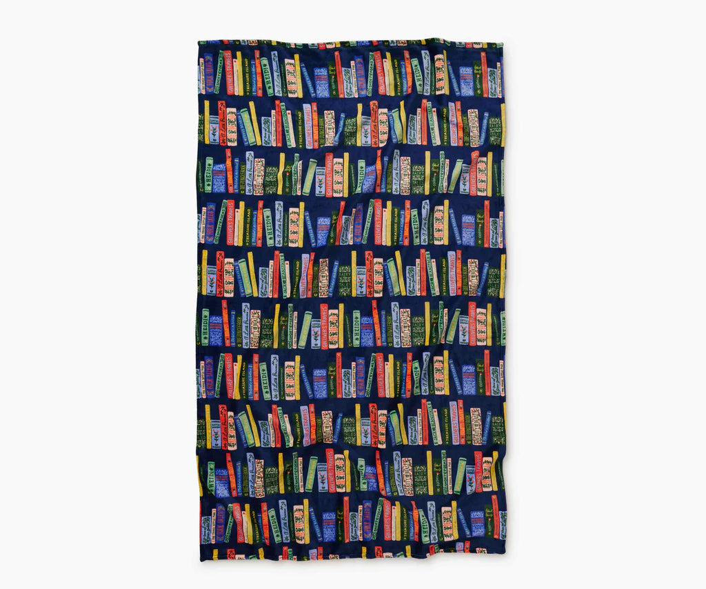Curl up with a good book and our bookshelf fleece blanket, featuring a line up of our favorite classic titles. Made of plush fleece, the blanket comes packaged with a ribbon so it’s ready to gift.