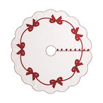 Wrap your holiday tree in festive charm with this playful cotton tree skirt. Featuring delicate embroidered edges, appliquéd bows, and covered buttons, it adds a whimsical touch while keeping your tree base neat and stylish. Perfect for creating a cozy, joyful atmosphere under the tree!