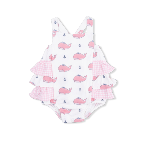 Bubbly Whale with Bow Pink Ruffle Sunsuit