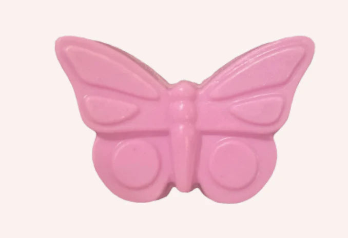 Make bath time something kids look forward to with our butterfly shaped bar soap! Vegan, paraben free, gentle on skin. Scented with organic strawberry fragrance oil. INGREDIENTS: Aqua (water), Glycerin, Sorbitol, Olive Oil*, Coconut oil*, Stearic Acid, Shea Butter, Isoamyl Laurate, Sodium Hydroxide, Avena Sativa (Oat) Protein, Titanium Dioxide, Sodium Chloride, Tetrasodium Glutamate Diacetate, Citric Acid. 100% organic and allergen free fragrance oil, cosmetic grade mica powder.