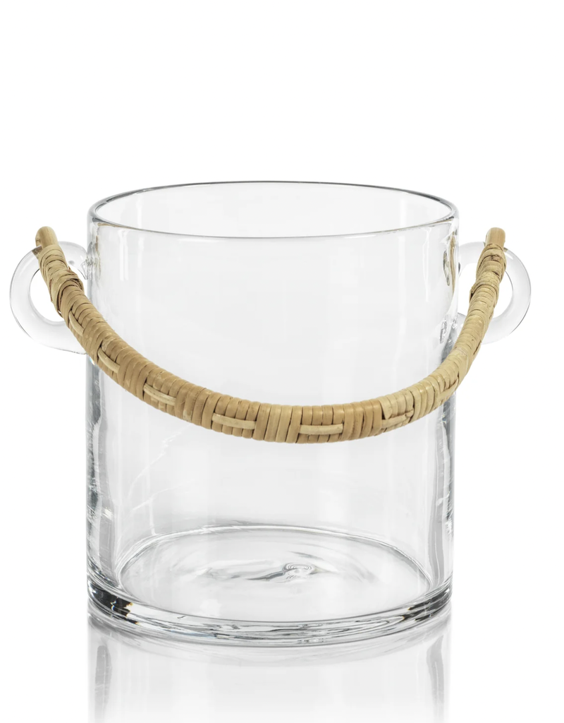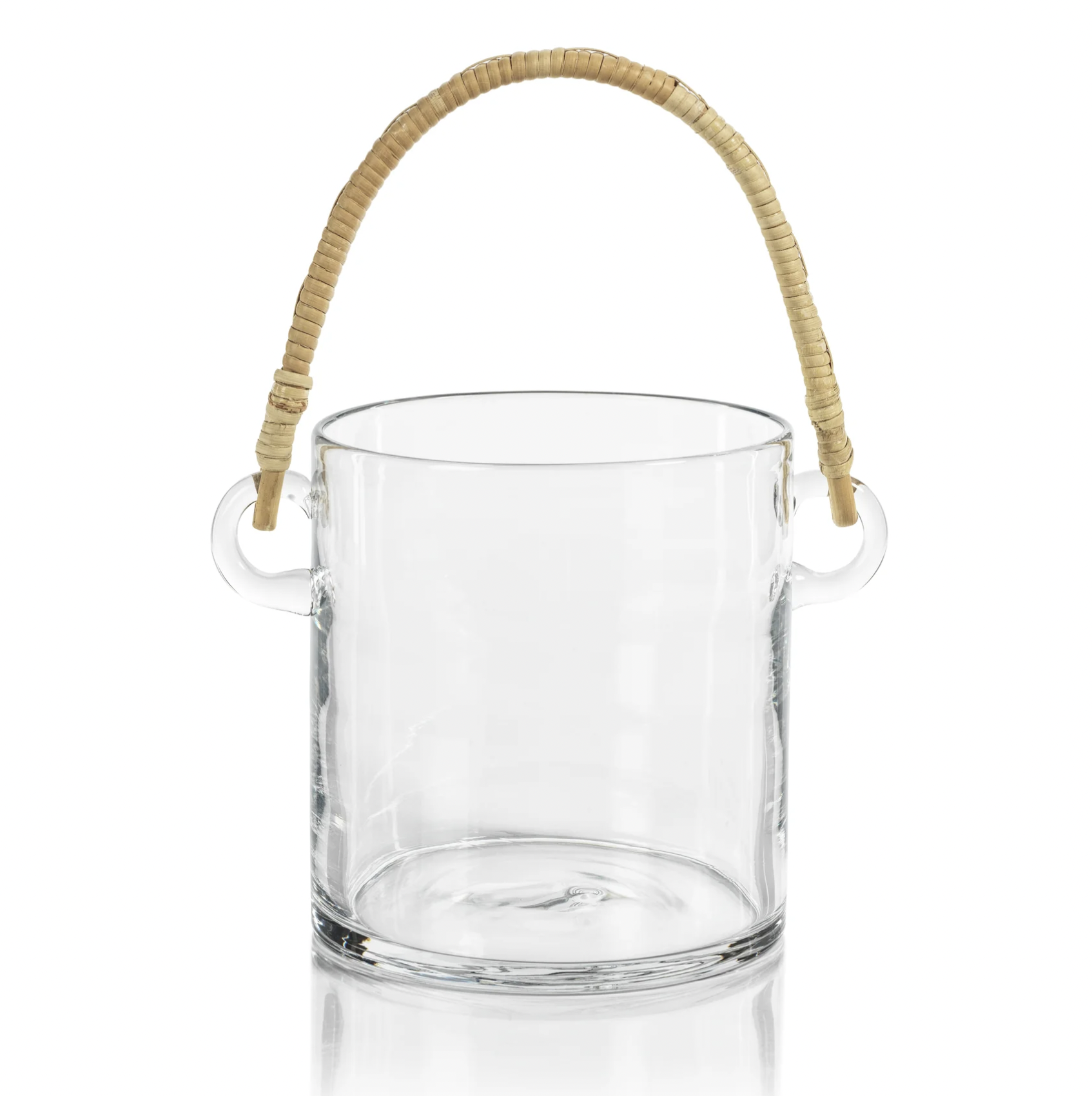Byblos Glass Ice Bucket w/ Rattan Handles