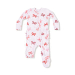 Candy Cane Bows 2 Way Zipper Ruffle Footie