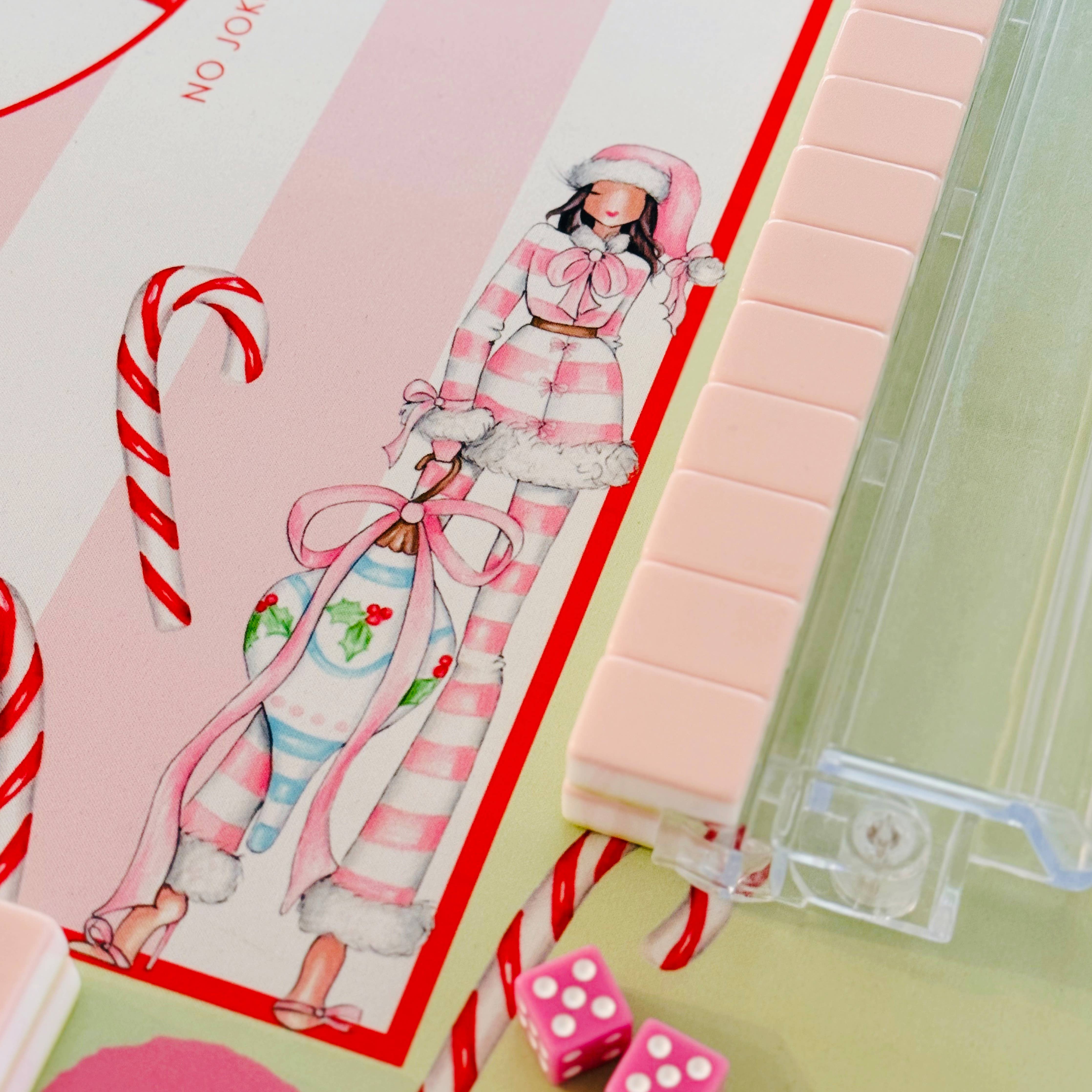 Designed to match our Mahjong tiles, this mat is crisp yet packs a punch! The white center allows the tiles to really pop! Cleans with a damp towel. Mats will ship in a clear sleeve with a tag. 32" x 32" neoprene mat