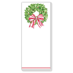 Christmas Wreath Berries and Red Striped Bow Skinny Notepad