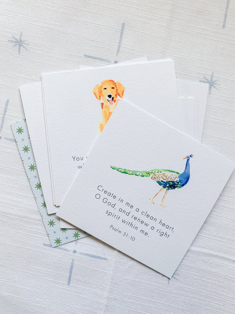 1. 10 card set, each card features one fruit of the spirit with a related verse and a custom watercolor design by Camilla Moss