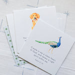 4. Small acrylic card holder included to display a single card at a time. A brass easel is also available for purchase to hold and display your set together!