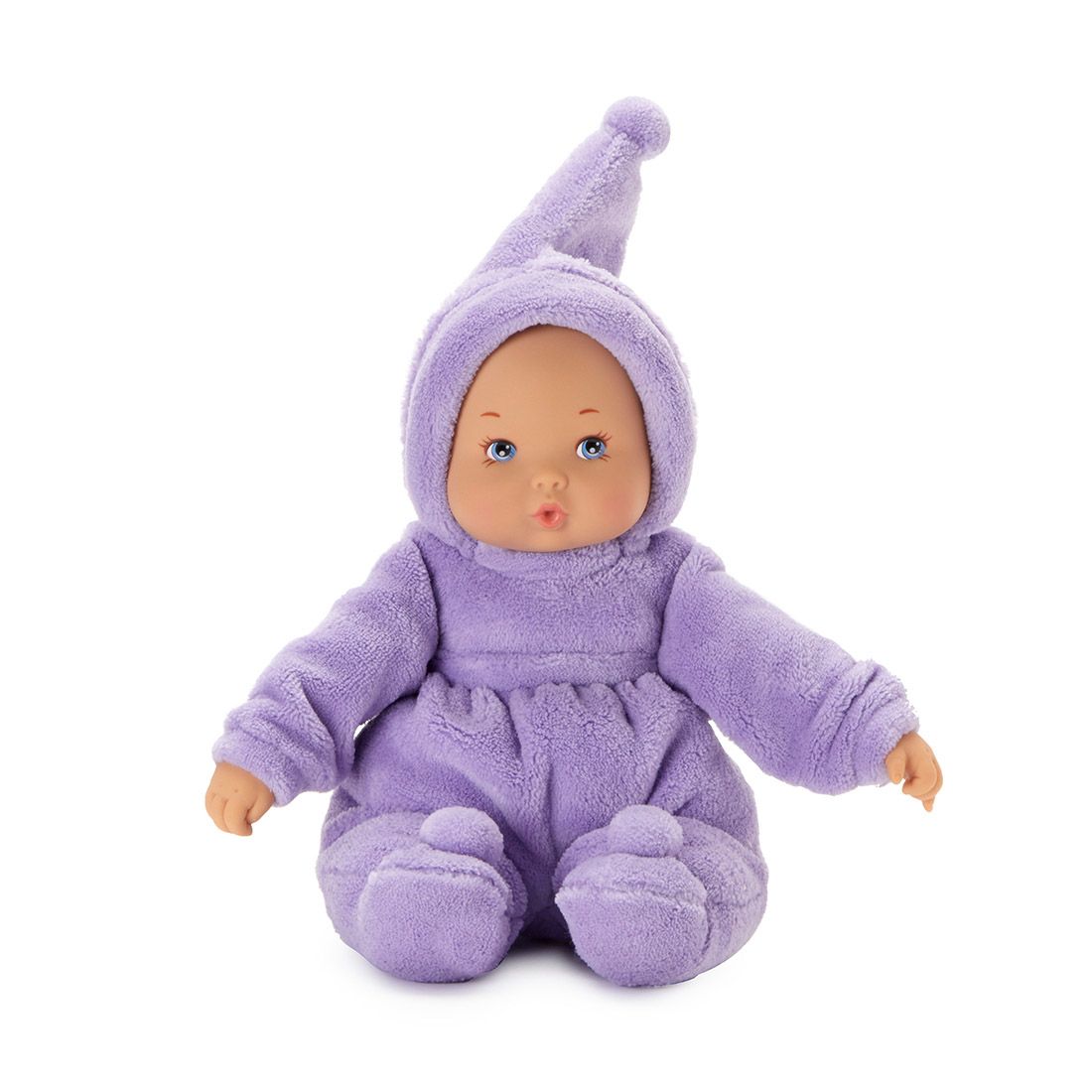 Dressed in lavender plush, this baby is the perfect first doll for any little one. Cute and cuddly, this 12" newborn baby doll with a soft fabric body is ready to be hugged. Ages 0+