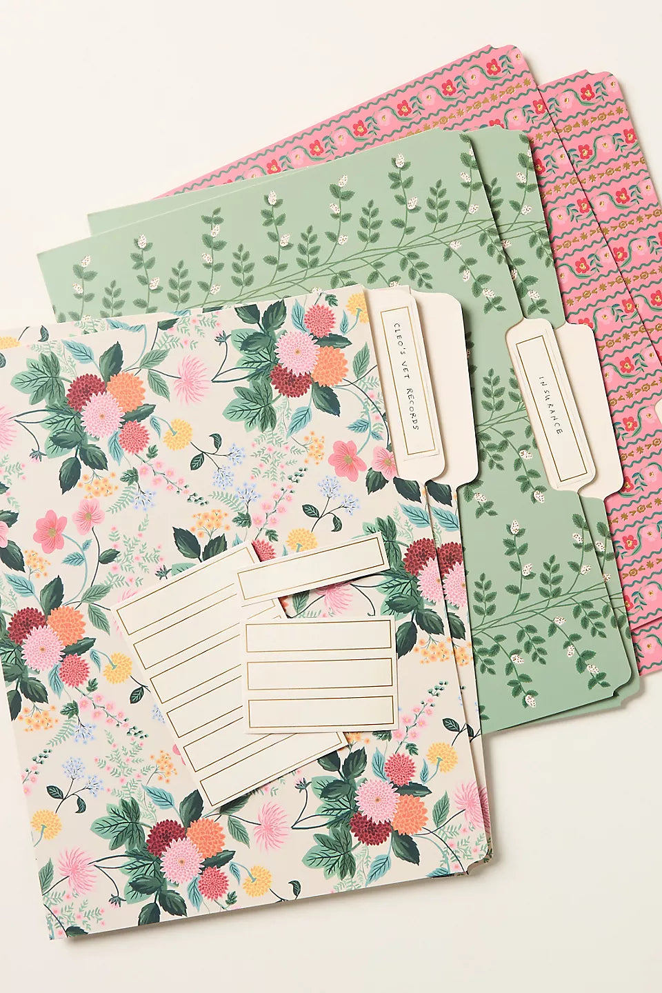 Find all the encouragement you need to get organized with Rifle Paper Co.'s stylish and sturdy file folders. The set of six folders includes two of each design and twelve handy adhesive labels.