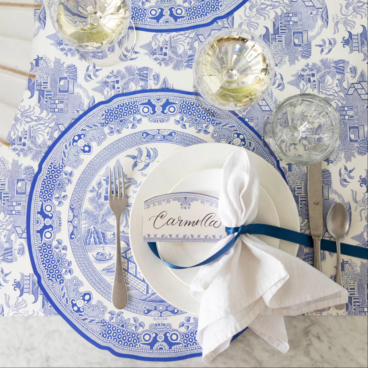In collaboration with Burleigh, we've brought the classic Blue Willow design to your table as a die-cut plate. Mix and match between the Blue Willow Placemat and Blue Willow Runner to coordinate the placemats to your dinnerware. Our paper placemats add an elegant touch to any tablescape.