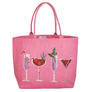 Add a touch of festive fun to your outings with the Drinks Holiday Sparkle Tote! This sequin-covered jute bag shines bright while offering sturdy cotton webbing handles for easy carrying. Inside, a laminated wipe-clean lining keeps spills at bay, making it perfect for holiday parties or beach days. Sparkle and practicality, all in one playful tote!