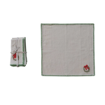 Add a festive touch to your table with these 18" square napkins featuring a colorful embroidered wreath, a charming appliqued bow, and a neat blanket stitch edge. This set of four offers a playful mix of colors that brighten any meal while adding a cozy, handcrafted feel to your gatherings. Perfect for holiday dinners or everyday cheer!