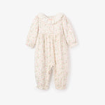This floral muslin jumpsuit features elastic cuffs and gentle gathers for easy movement. A cozy, feminine essential for everyday comfort