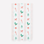 Why settle for just one Christmas motif when you can have a mix of statement icons? Inspired by nostalgic wallpaper patterns, this design blends classic red and green with trend-forward pink stripes for a fresh feel. A chic and practical way to add a touch of tradition for the holidays. Ideal to place in your guest bathroom or to use on your party table.