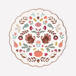 A folk theme is the ultimate way to embrace the charm of fall and Thanksgiving. Rich, earthy colors embody this season's warm tones, while harvest-inspired symbols celebrate nature's beauty. Our clever designers have re-imagined these timeless elements for these stylish paper plates, bringing a perfect blend of tradition and trend to your party table.