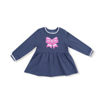 French Terry Sport Varsity Navy Dress w/ Pink Bow Appliqué