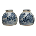 11" Round x 11"H Decorative Stoneware Ginger Jar, Distressed Blue & White