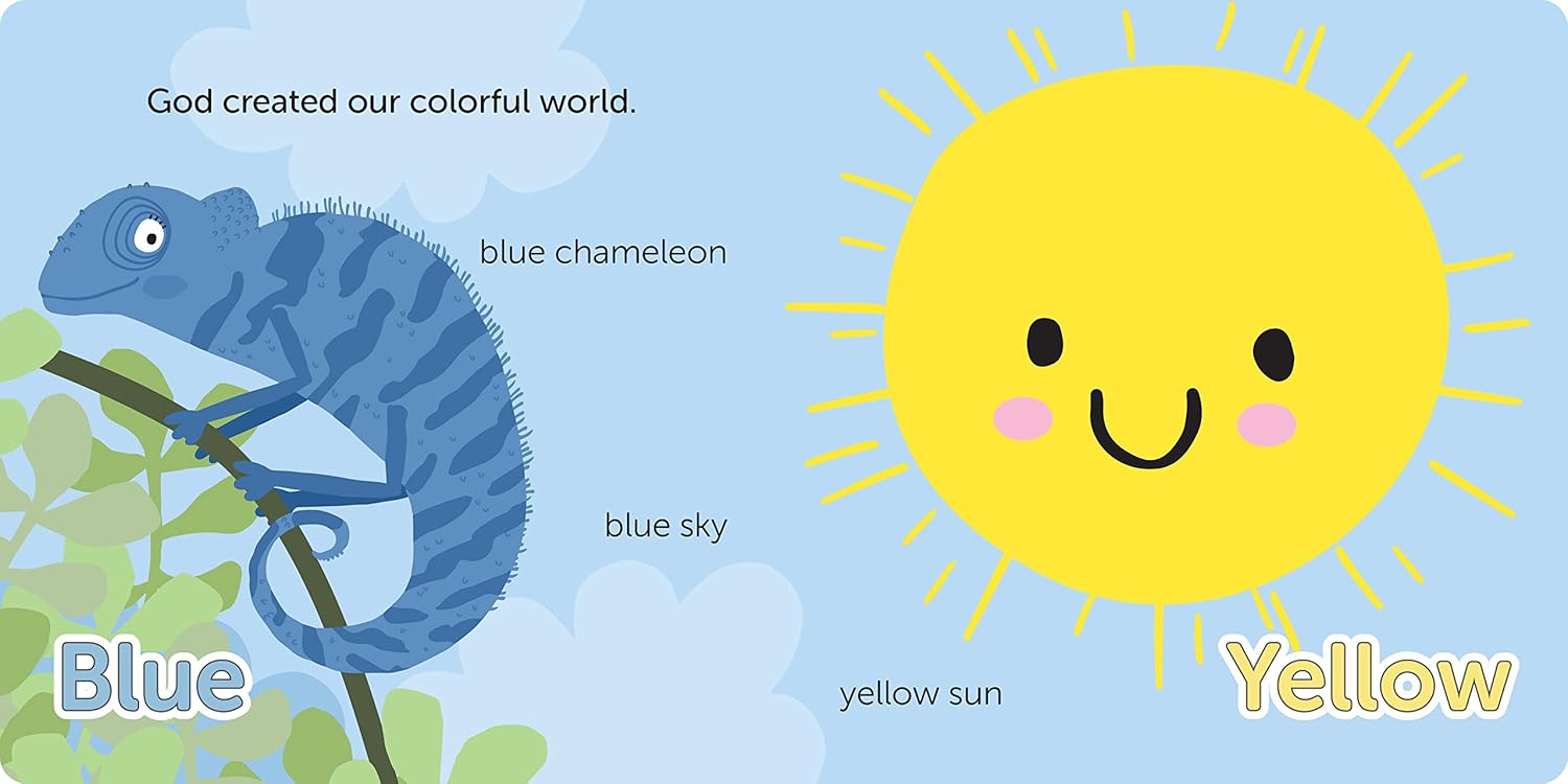 God created a world full of beautiful colors. This adorable touch-and-feel book will teach your toddler to identify color names and to praise God for His glorious creations!