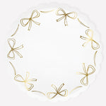 Add flair to your party with these elegant paper plates. The combination of golden bows, and a scalloped border, is guaranteed to bring effortless sophistication to your table, making every setting shine. Disposable plates have never been this chic, and are perfect for the whole family to use. Ideal for Christmas, New Year, golden wedding anniversaries, bridal showers and special birthdays.