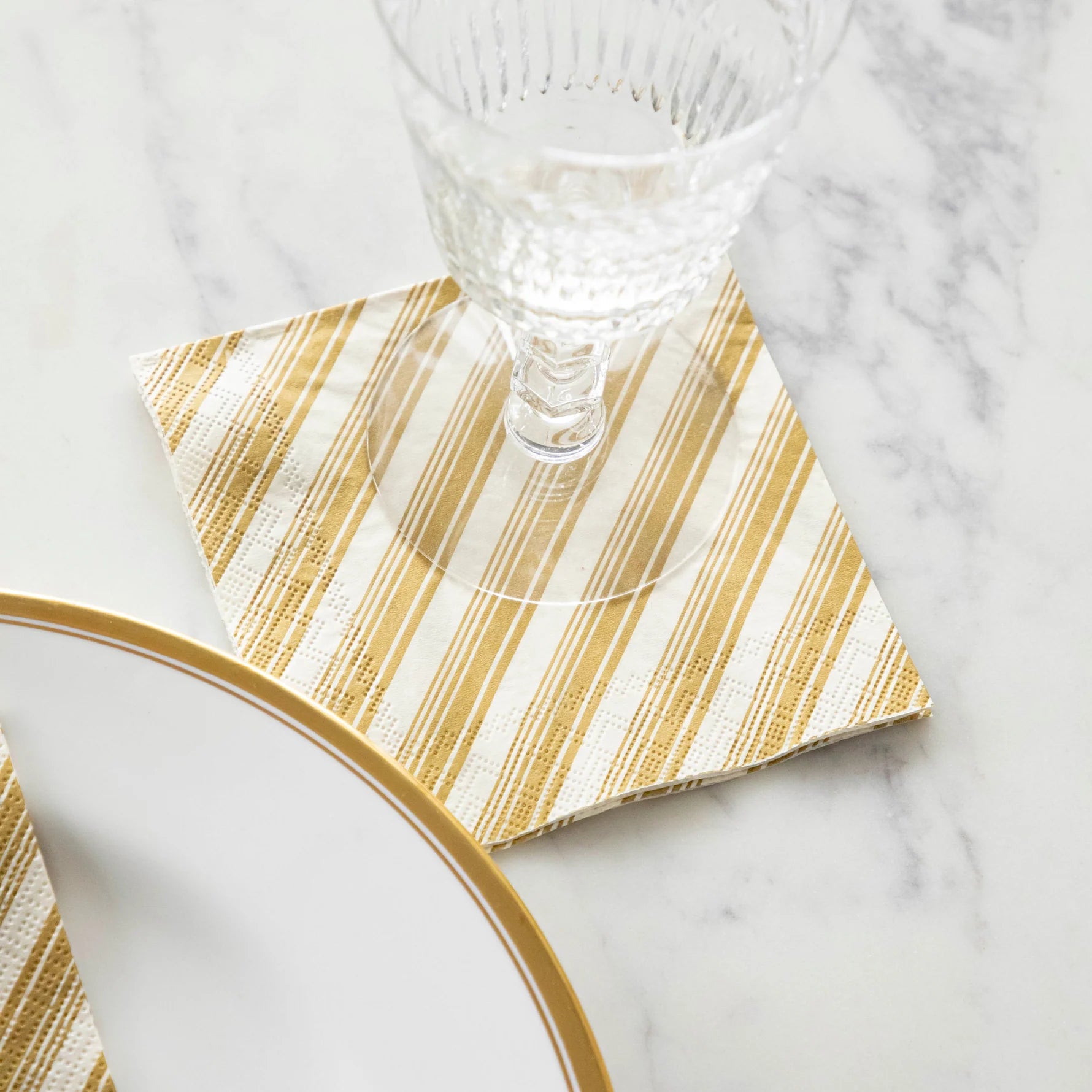 A Christmas Classic! Allow our Gold Peppermint Stripe Cocktail Napkins to accompany any of our holiday stories or shine solo on your table as the perfect pop of candy coated elegance for the sweetest season of all!