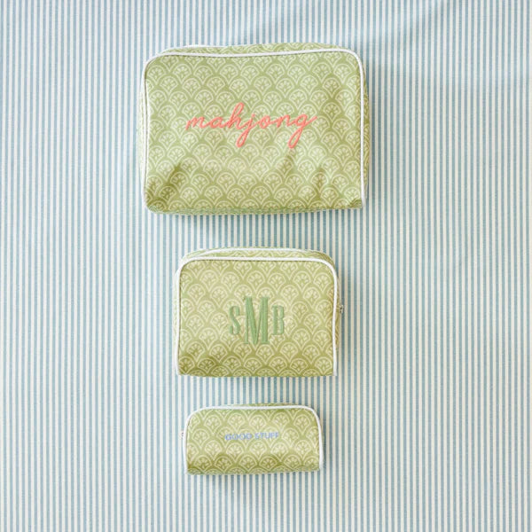 Green Block Print Toiletry Bag