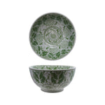 This 10" round by 5" high stoneware bowl features a beautiful green pattern that adds a touch of elegance to any table setting. The intricate design is sure to impress your guests and elevate your dining experience. This versatile bowl is perfect for serving salads, pasta, or snacks, and its durable stoneware construction ensures long-lasting use. Add a pop of color to your kitchen with this stylish and functional bowl.