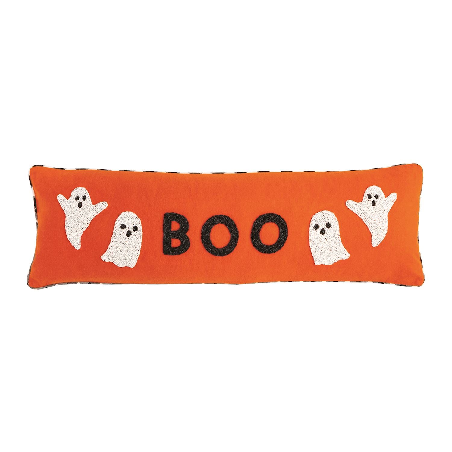 Add a playful pop to your Halloween décor with this canvas pillow featuring charming bead appliqués and contrasting piping. The coordinating back and zipper closure make it both stylish and easy to care for, perfect for cozying up your spooky space.