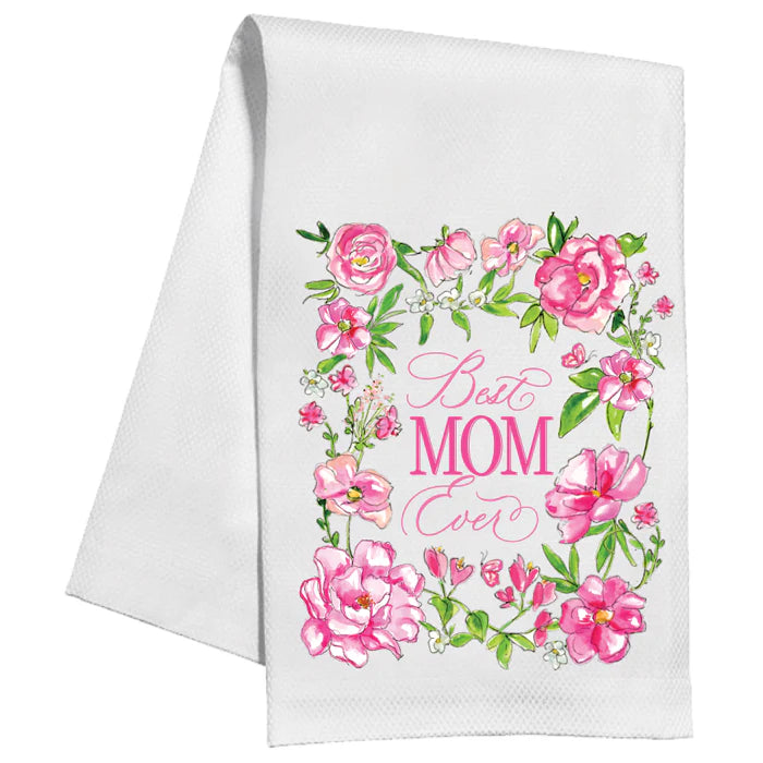 Handpainted Best Mom Ever Pink Flowers Hand Towel