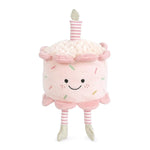 Celebrate every day like it's your birthday with Mon Ami's delightful plush Happy Cake! Where sweetness and softness come together in the most playful way. This cuddly creation is a dream in velvety pastels, with a frosting of plushy swirls in creamy white that invites endless snuggles. Atop this fluffy cake sits a single striped candle, perfectly matching its cute, dangling legs. But the real star of the show is it's big, joyous smile framed by multicolored, embroidered sprinkles that sparkle with happiness! Embrace the fun, feel the magic, and let every day become a celebration!