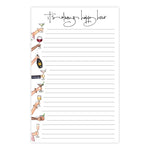 It's the desk must-have that we can't keep in stock... our notepads are a best seller across all platforms and will be one for your store, too! -5.5"x8.5" lined 50-sheet notepads with cardboard backing -printed in Nashville -packaged in a clear sleeve